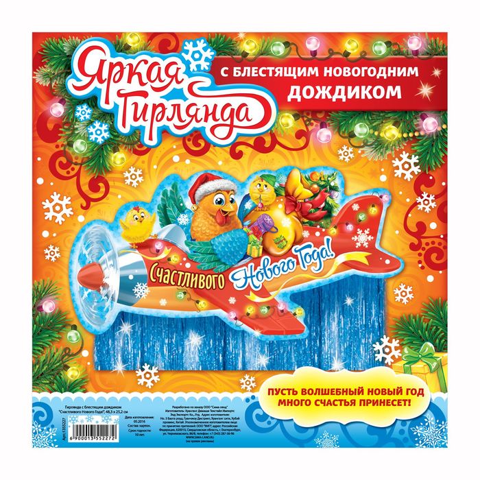 Гирлянда с блестящим дождиком "Счастливого Нового года!