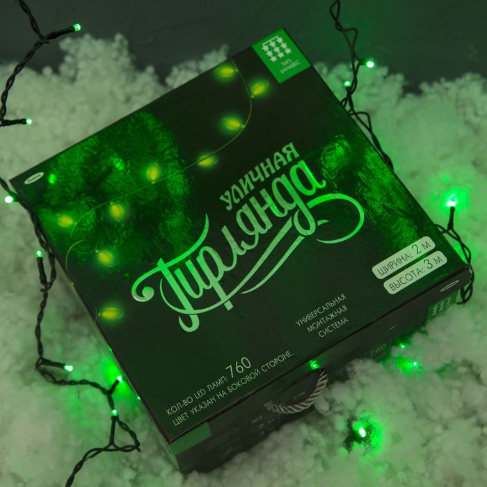 Гирлянда "Занавес" улич. УМС, Ш:2 м, В:3 м, Н.Т. 3W LED-760-220V, БЕЗ контр. ЗЕЛЕНЫЙ