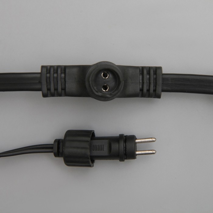 - соединяются — стало реальностью создание огромного сияющего шлейфа, достаточно лишь соединить гирлянды между собой при помощи специальных комплектующих. Математика предельно проста: достаточно разделить число LED-ламп контроллера на число LED-ламп гирлянд, и вы получите возможное количество подключаемых комплектов.