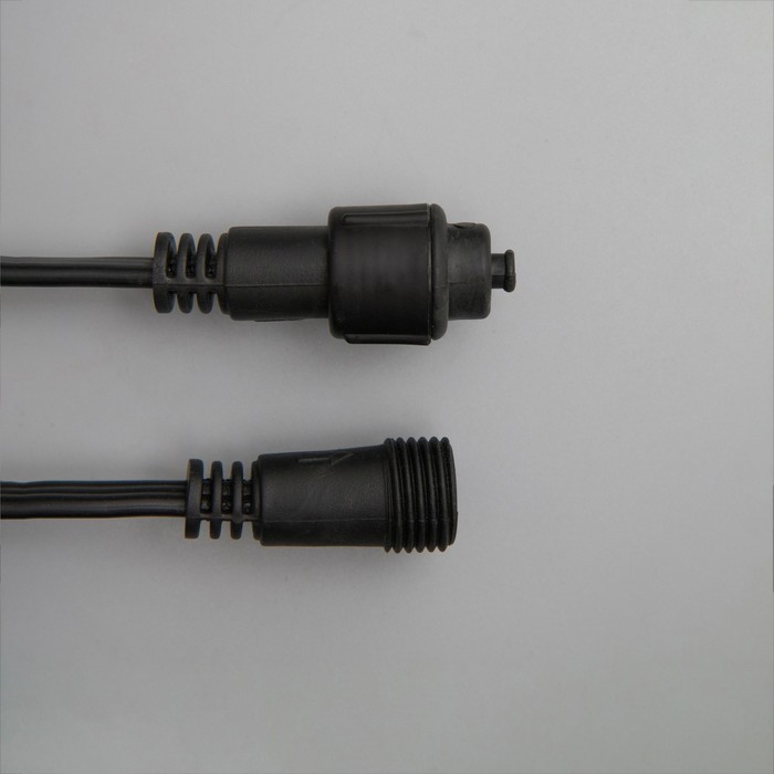 - соединяются — стало реальностью создание огромного сияющего шлейфа, достаточно лишь соединить гирлянды между собой при помощи специальных комплектующих. Математика предельно проста: достаточно разделить число LED-ламп контроллера на число LED-ламп гирлянд, и вы получите возможное количество подключаемых комплектов.
