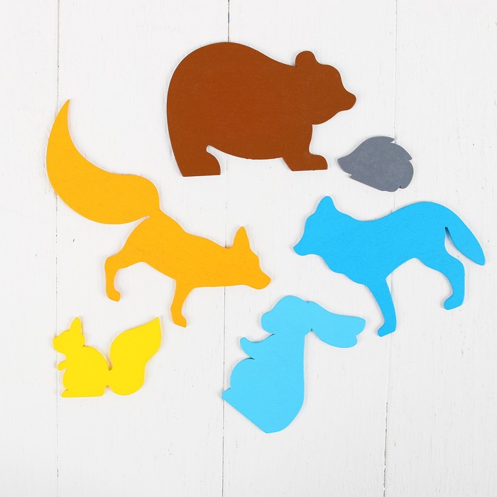 Определите с малышом положение фигурок и попросите ребёнка назвать каждого персонажа, затем устройте зверят на предназначенные им места.