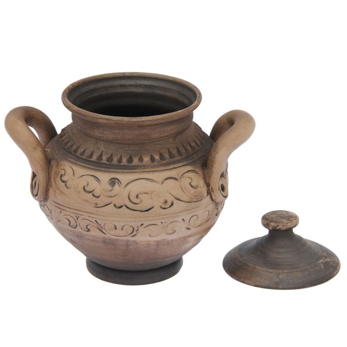 Такой горшочек — ценное приобретение для кухни, ведь процесс готовки в такой посуде прост и даёт невероятный простор для кулинарных импровизаций. Продукты готовятся в собственном соку без добавления масла, поэтому калорийность таких блюд минимальна. Керамическое изделие ручной работы дополнит традиционный интерьер русской кухни.
