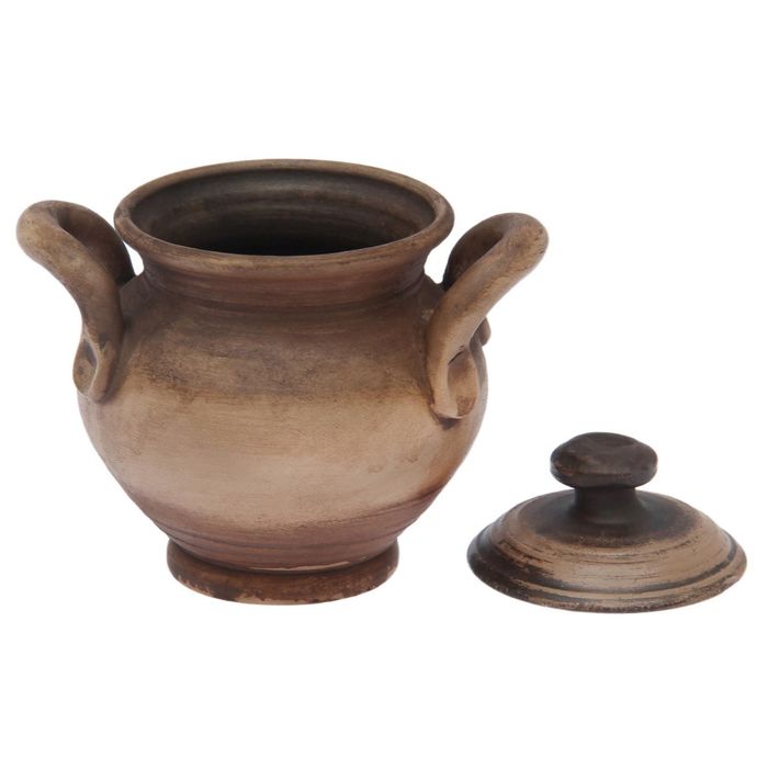 Такой горшочек — ценное приобретение для кухни, ведь процесс готовки в такой посуде прост и даёт невероятный простор для кулинарных импровизаций. Продукты готовятся в собственном соку без добавления масла, поэтому калорийность таких блюд минимальна. Керамическое изделие ручной работы дополнит традиционный интерьер русской кухни.