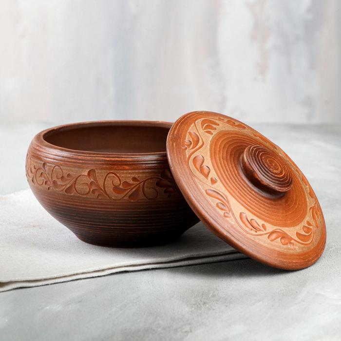 Такой горшочек — ценное приобретение для кухни, которое даёт невероятные возможности для кулинарных импровизаций. Процесс приготовления пищи в такой посуде очень прост. Изделие изготовлено вручную из керамики и прекрасно дополнит традиционный интерьер русской кухни.