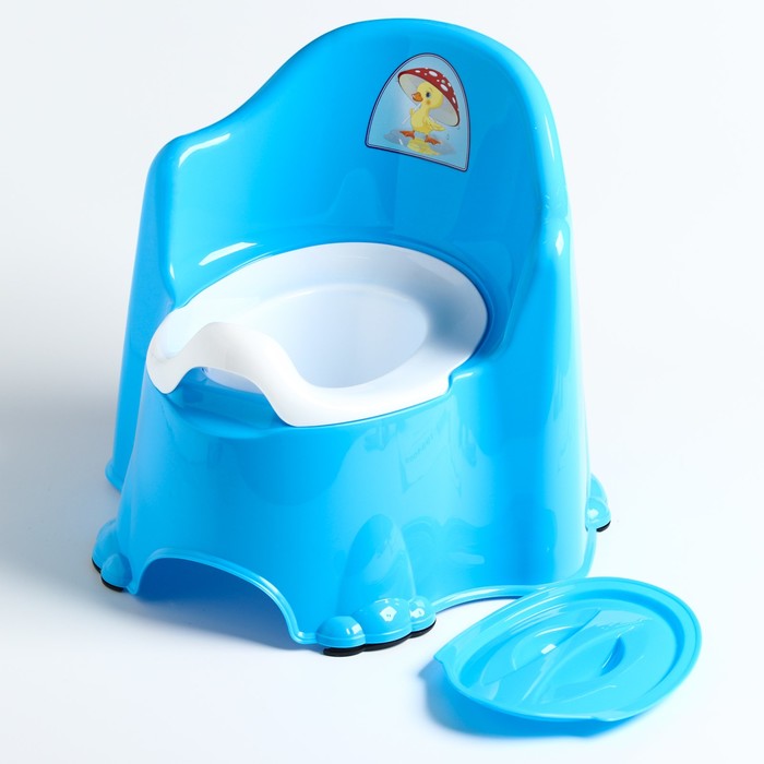 Горшок детский антискользящий «Комфорт» с крышкой, съёмная чаша, цвет голубой