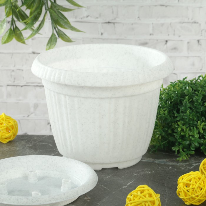 Каждому хозяину периодически приходит мысль обновить свою квартиру, сделать ремонт, перестановку или кардинально поменять внешний вид каждой комнаты. Горшок для цветов d=13 см "Таити" с подставкой, цвет мраморный — привлекательная деталь, которая поможет воплотить вашу интерьерную идею, создать неповторимую атмосферу в вашем доме. Окружите себя приятными мелочами, пусть они радуют глаз и дарят гармонию.