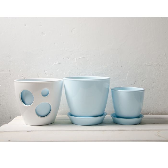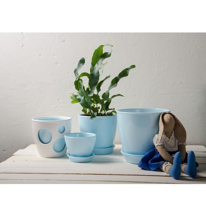 Горшок "Виктория" 2 горшка: 2 л и 1 л глянец Белый и Небесно-голубой