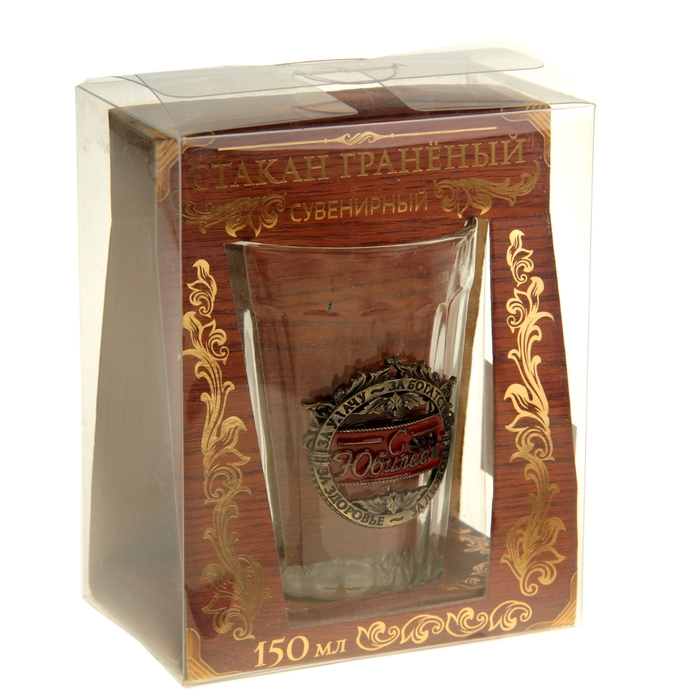 Граненый стакан "С юбилеем, за удачу" с бляхой (150 мл)