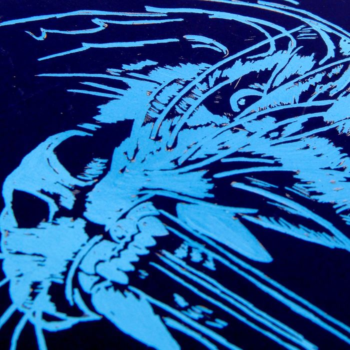 Гравюра "Лев", металлический эффект "лазурь", фиолетовое покрытие, 15 х 21 см