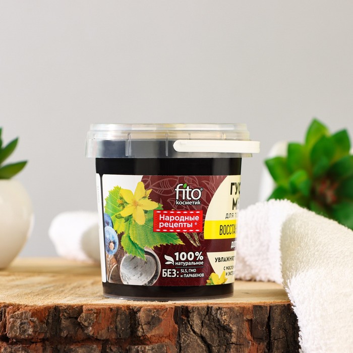 Густое мыло для волос и тела "Народные рецепты" восстанавливающее, дегтярное, банка, 155 мл 207310 эффективно очищает кожу, не травмирует и не сушит её.