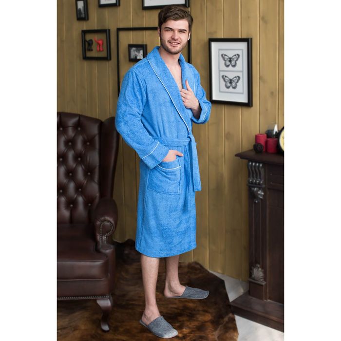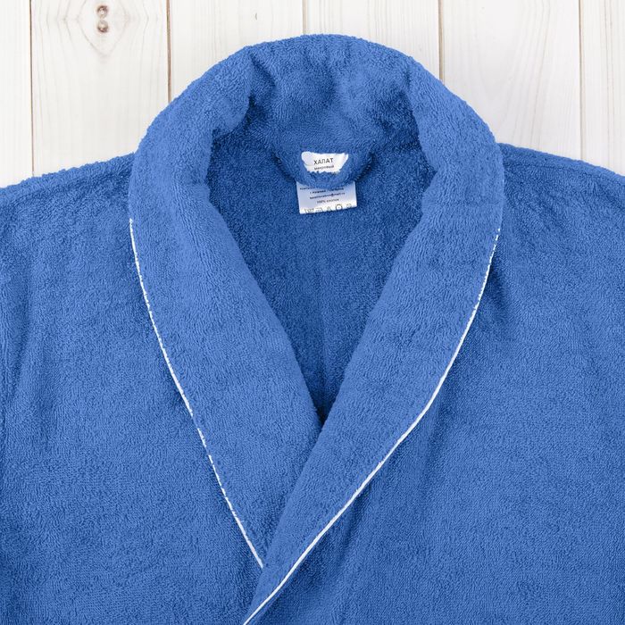 Халат мужской, шалька/кант, размер 50, синий, махра