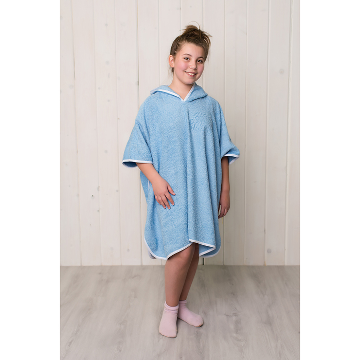 Халат пончо махровый, цвет голубой, размер 100*80, 380 г/м, хл 100%