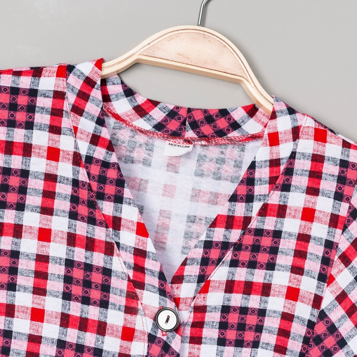 Халат женский на пуговицах 735 цвет красно-белая клетка, р-р 58