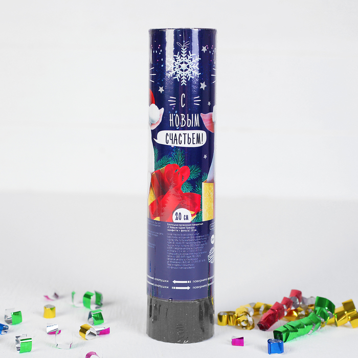 Хлопушка пружинная поворотная "С Новым Годом"хрюша (конфетти+ фольга) 20см