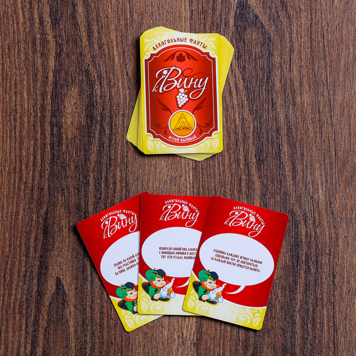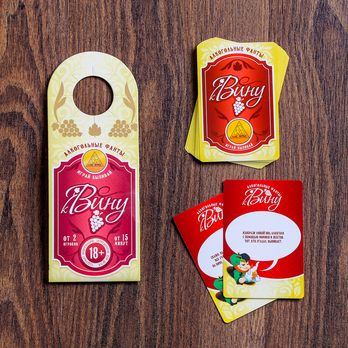 Невозможно представить нашу жизнь без праздников! Мы всегда ждём их и предвкушаем, обдумываем, как проведём памятный день, тщательно выбираем подарки и аксессуары, ведь именно они создают и поддерживают торжественный настрой. Игра алко-фанты "К вину", вешается на бутылку — это отличный выбор, который привнесёт атмосферу праздника в ваш дом!