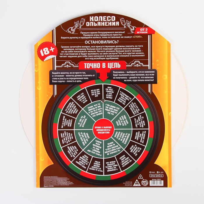 В маленьком окошке рулетки написаны задания, которые выполняет тот, кто крутил «Колесо опьянения». Веселитесь до упаду!
