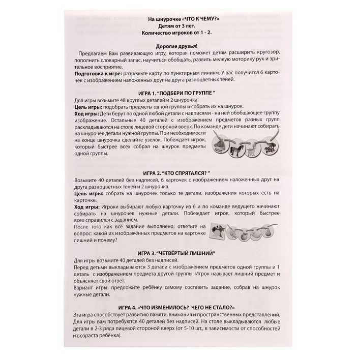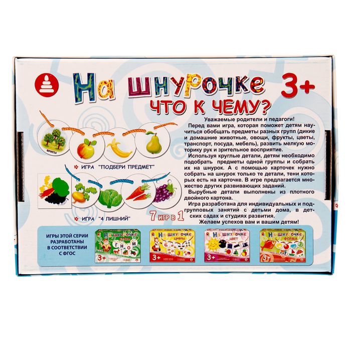 Методы воспитания и образования будут меняться бесконечно, но во все времена постоянным остаётся одно ― радость ребёнка от подаренной ему игрушки. Как известно, счастливая улыбка крохи ― самая большая награда для родителей. Игра настольная На шнурочке. "Что к чему?" — отличный подарок вашему малышу.