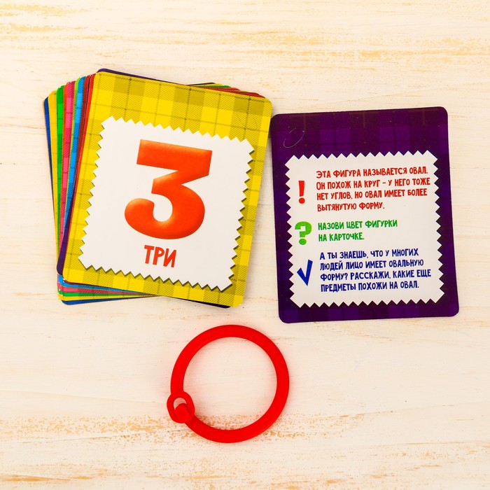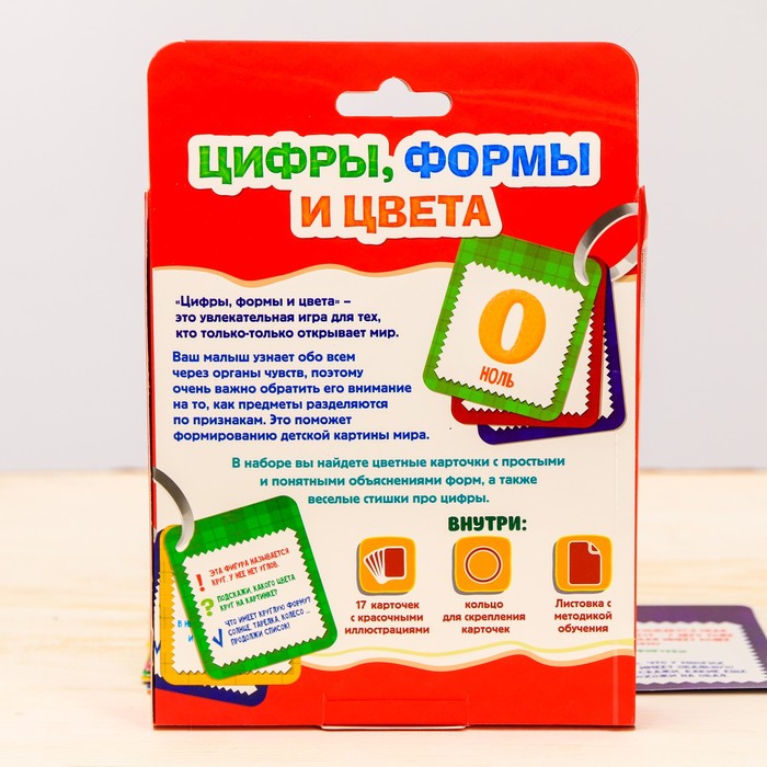 На одной стороне карточек вы найдёте яркую картинку, а на другой — весёлое стихотворение или увлекательное задание, которое поможет быстрее запомнить информацию. Карточки можно скрепить пластиковым кольцом — так их удобнее будет держать в руках и рассматривать. А в листовке с методикой обучения родители смогут найти много интересных советов по технике и процессу обучения.