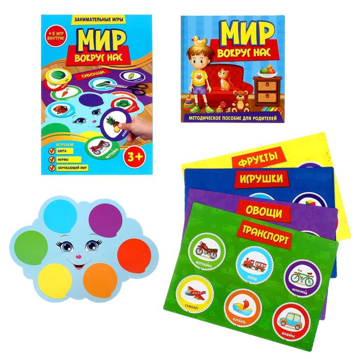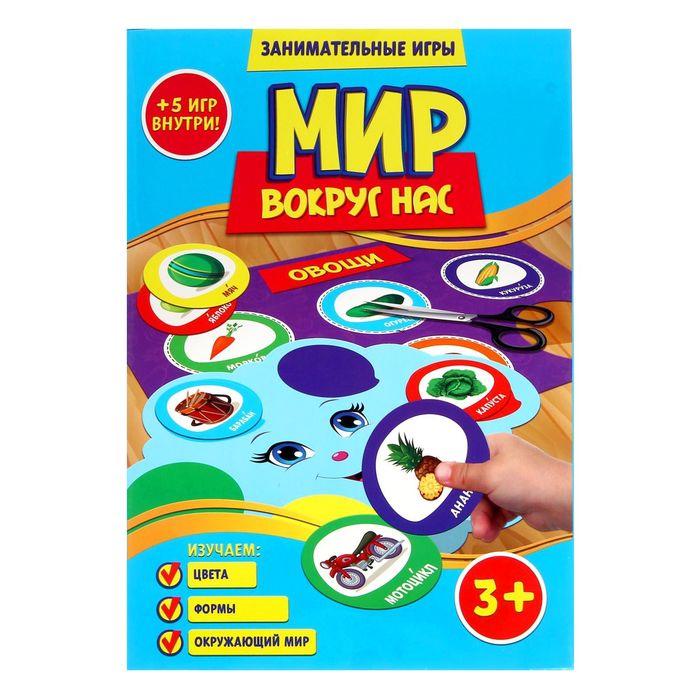 Внутри вы найдёте задания, которые помогут изучить цвета и геометрические формы. Игры также содержат весёлые загадки, интересные факты про овощи и фрукты и задачки в стихотворной форме.