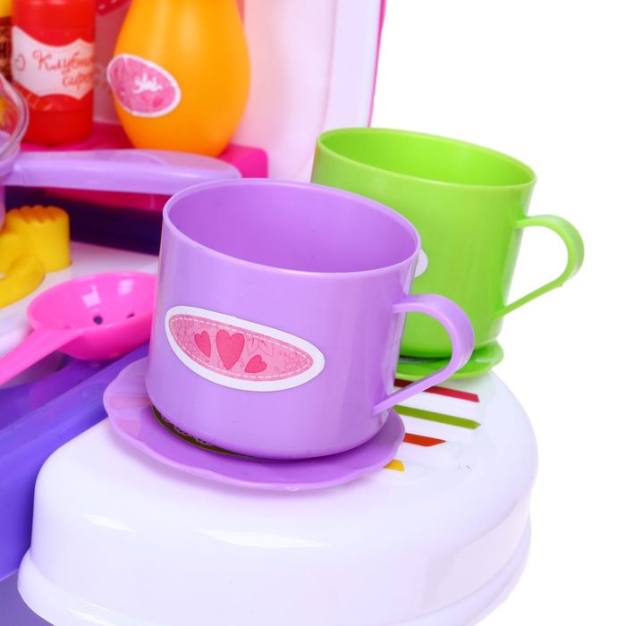 Конфорки плиты светятся и воспроизводят яркие звуковые эффекты, девочка с удовольствием будет экспериментировать.
