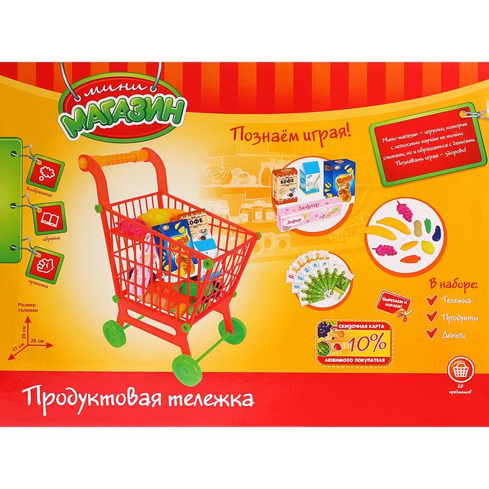 Методы воспитания и образования будут меняться бесконечно, но во все времена постоянным остаётся одно ― радость ребёнка от подаренной ему игрушки. Как известно, счастливая улыбка крохи ― самая большая награда для родителей. Игровой набор "Супермаркет": тележка с продуктами, высота 43 см — отличный подарок вашему малышу.