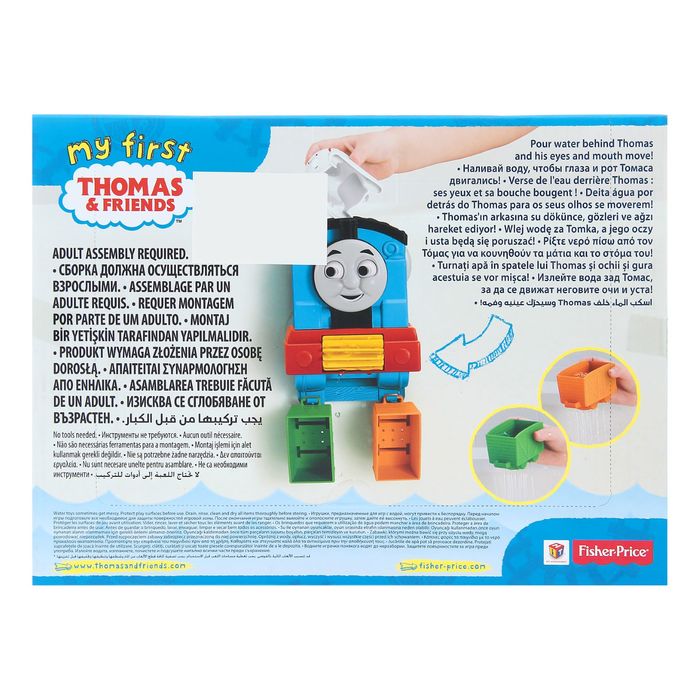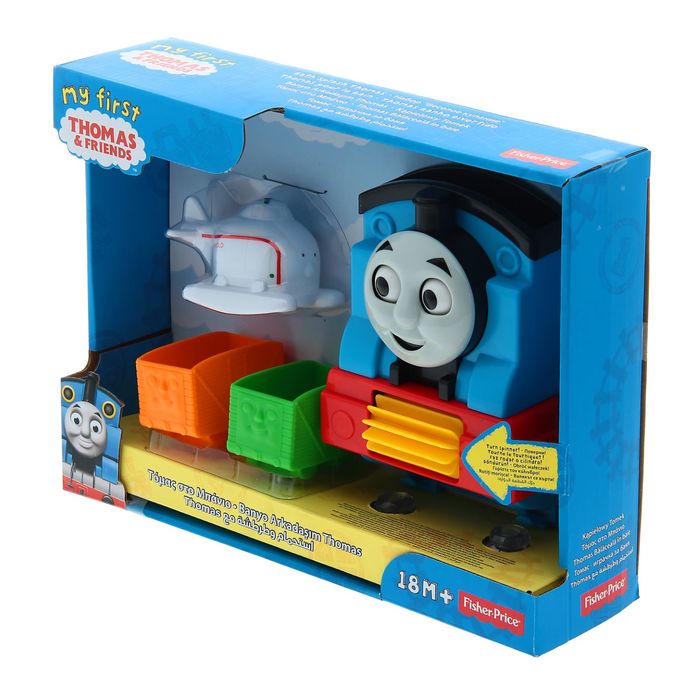 Паровозик Томас вместе с вертолётом мечтает сделать купание для малышей самым любимым и долгожданным занятием. Присоедините к игрушке два вместительных вагона, зацепите её сверху летательным аппаратом и зачерпните воды из ванны. Жидкость будет медленно выходить из маленьких дырочек. Полейте на вращающуюся мельницу, чтобы любимый герой мультсериала стал двигать ртом и смотреть по сторонам.