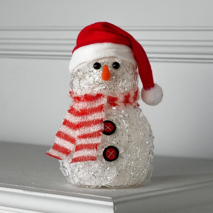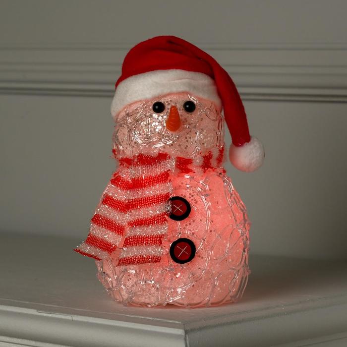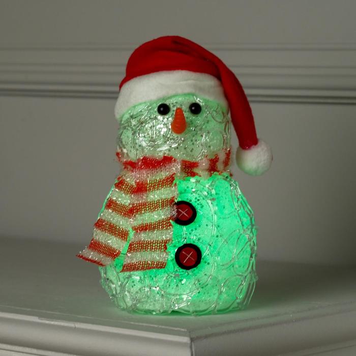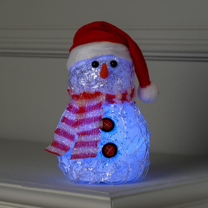 Игрушка акрил. "Снеговик" (батарейки в комплекте) 11 х 13 см, 1 LED, RGB, БЕЛЫЙ