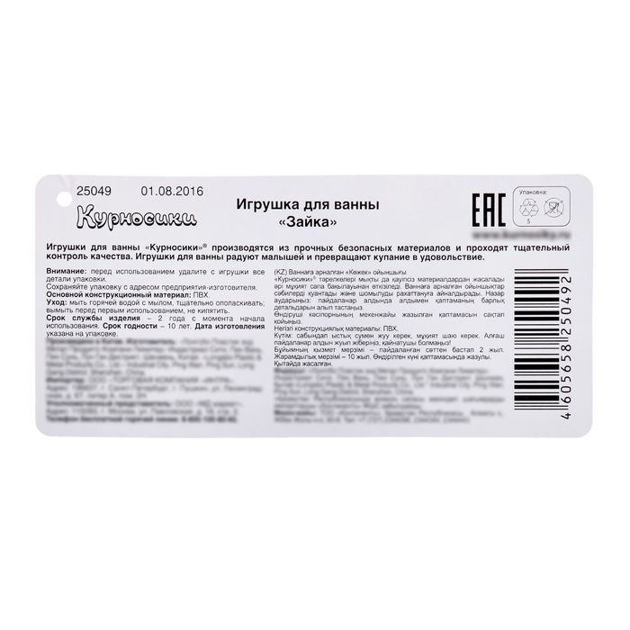 Качество товара подтверждается сертификатом соответствия ЕАС. Предназначено для детей с 6 месяцев.