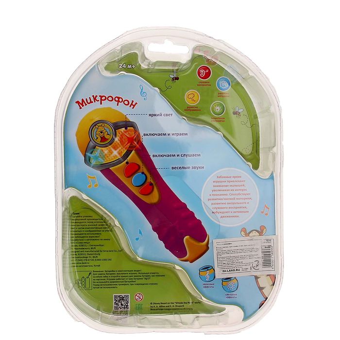 Малыш уже проявляет способности к пению или мечтает стать музыкальной звездой и покорить мировую сцену? Подарите ему музыкальный микрофон «Винни и его друзья». Он почти как настоящий. Его лампочки ярко светят, а при нажатии на кнопки раздаются забавные звуки. С ним юный талант устроит импровизированные концерты для близких и друзей.