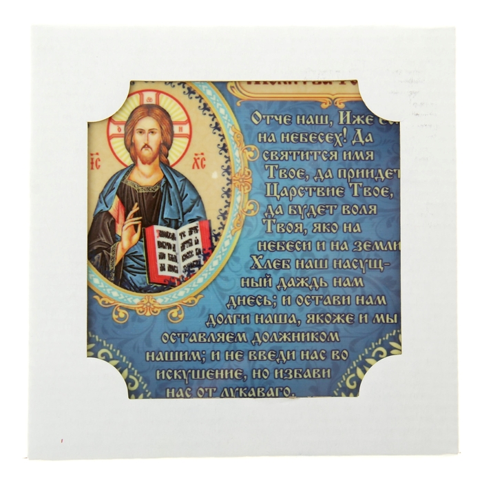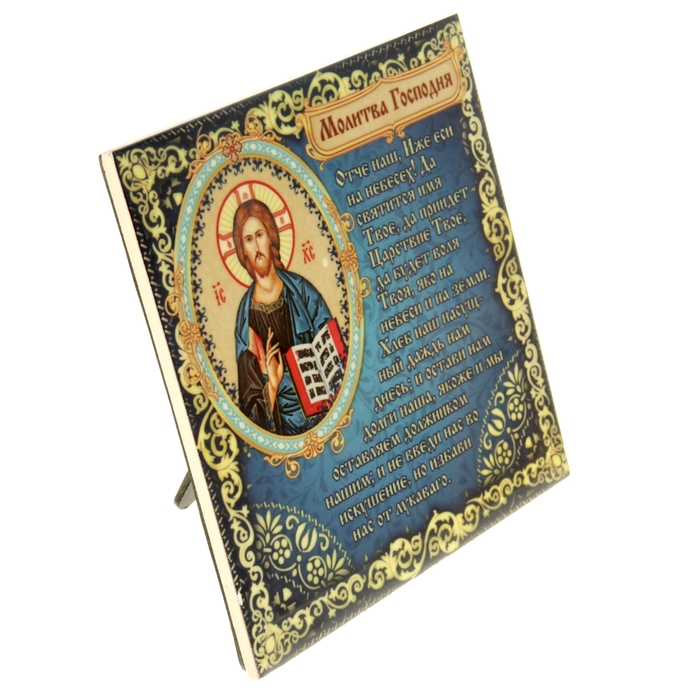 Икона с молитвой "Молитва Господня" - изготовлена из качественной глянцевой керамики с полноцветным, ярким нанесением. На обратной стороне имеется подставка и подвес, поэтому такую икону с молитвой одинаково удобно ставить на стол или размещать на стене. Упакована в белую картонную коробку. Икона с молитвой полностью соответствует канонам Православной Церкви. Будет прекрасным подарком с глубоким смыслом, подчеркивающим духовность дарителя и получателя.