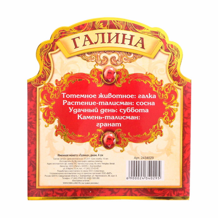 Именная монета "Галина"