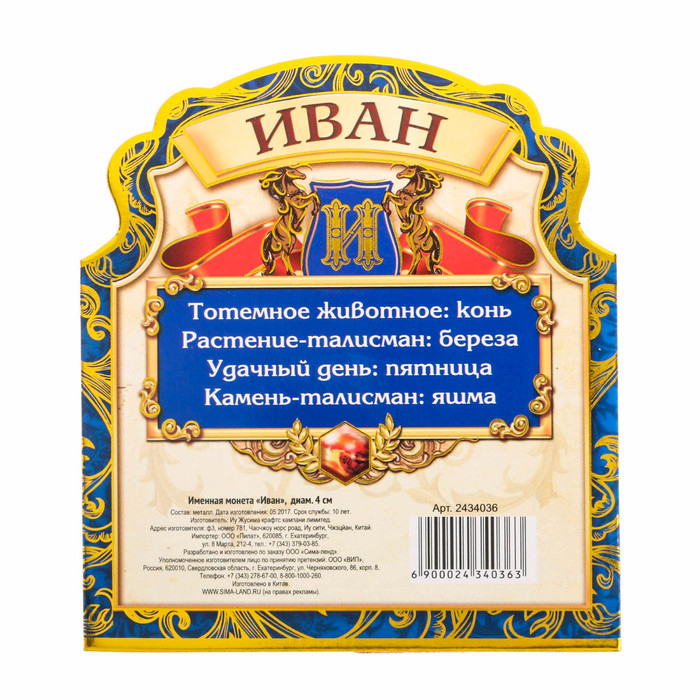 Именная монета "Иван"