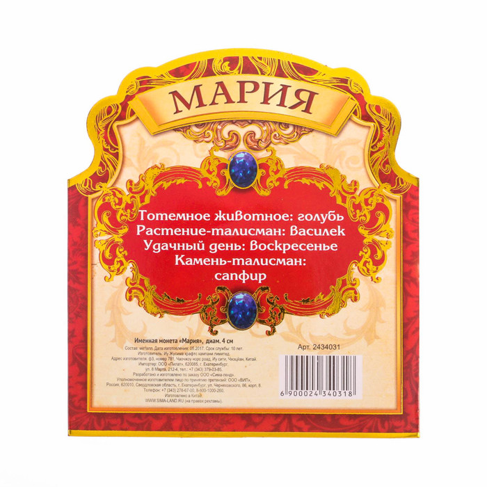 Именная монета "Мария"