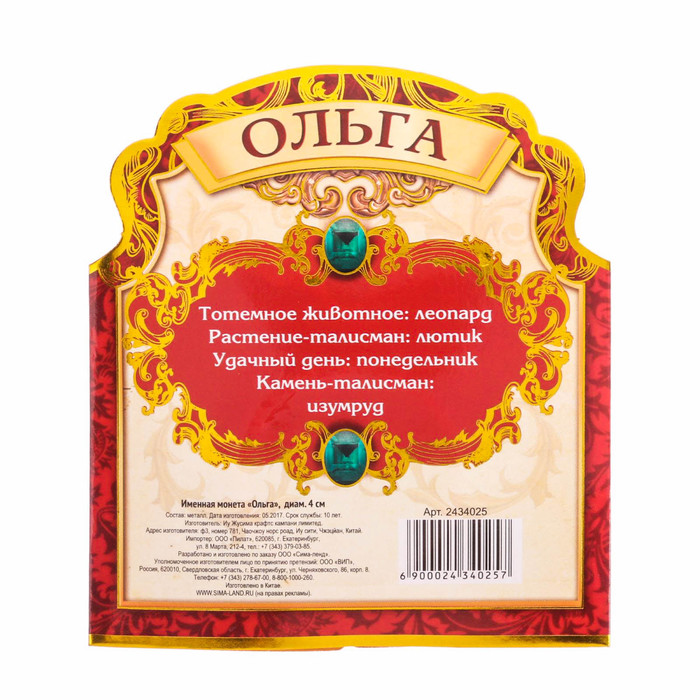 Именная монета "Ольга"