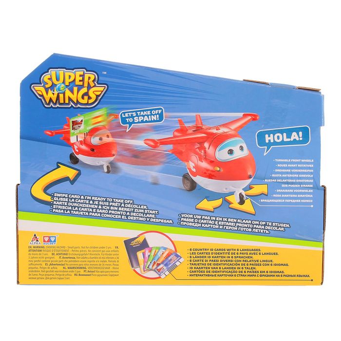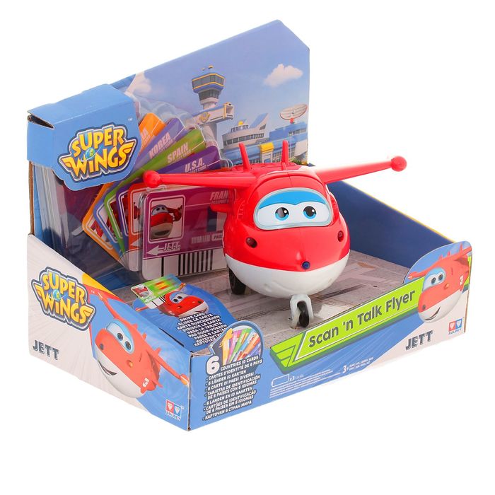 У Джетта есть специальное отверстие, по которому нужно проводить одной из шести интерактивных карт, и герой будет готов к вылету. Карточки дают возможность свмолёту говорить фразы на разных языках — теперь не страшно, что в новой стране его никто не поймёт. Изучайте культуру и географию разных стран вместе с любимым героем!