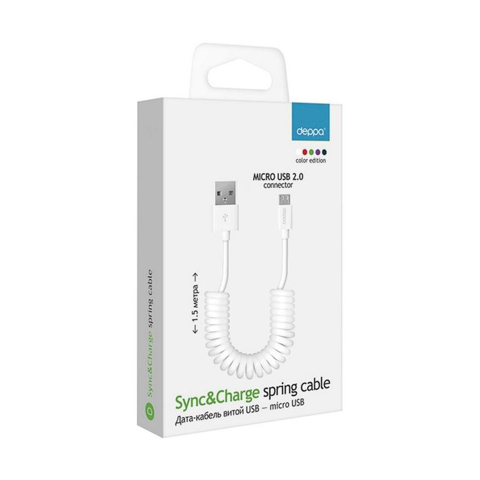 Кабель Deppa (72122) витой micro USB, белый, 1,5м