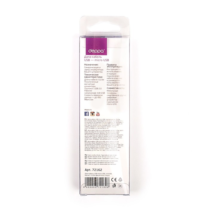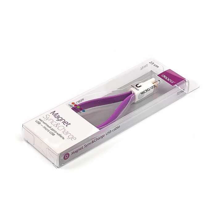 Кабель Deppa магнит micro USB 0,23м, плоский, фиолетовый — это аксессуар, который увеличивает функциональность компьютера или другого прибора, подключая интерфейсы смежных устройств.