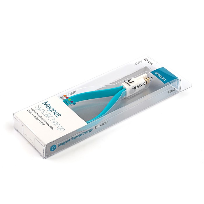 Кабель Deppa магнит micro USB 0,23м, плоский, голубой