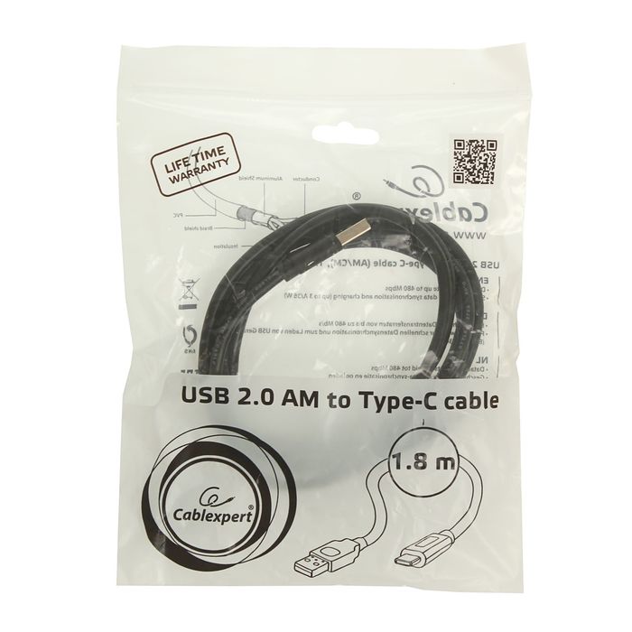 Кабель USB Cablexpert CCP-USB2-AMCM-6, USB2.0 AM/USB3.1 Type-C, 1.8м, пакет