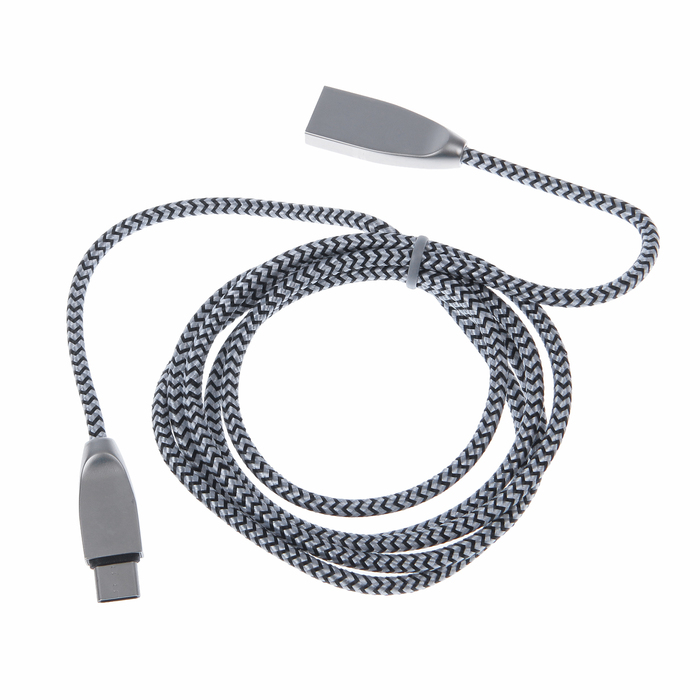 Кабель USB2.0 Qumann USB-Type-C 1,2м 2,4А нейлон/цинк серебряно-чёрный
