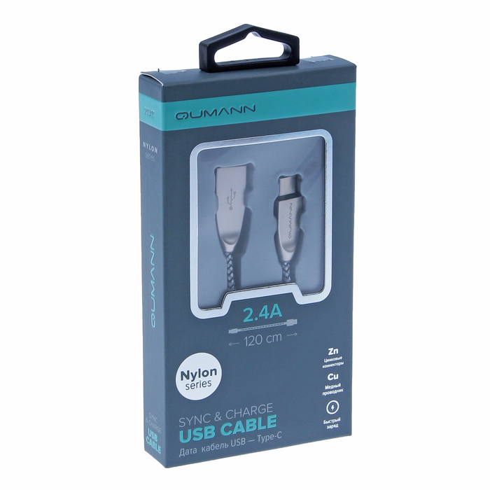 Кабель Qumann позволит заряжать гаджет с разъёмом USB-Type-C и передавать данные между ним и компьютером. Нейлоновая оплётка защитит шнур от затирания и перегибов. Металлические коннекторы не повредятся при случайном ударе или ношении в сумке.