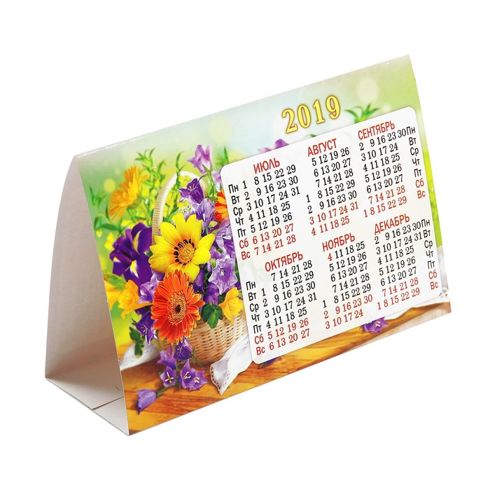 Календарь-домик треугольный "Цветы (букеты)" 2019 год, 18,8х13см