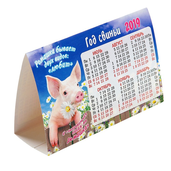 Календарь-домик треугольный "Год Свиньи коллаж. Йога, любит - не любит" 2019 год, 18,8х13см 394119