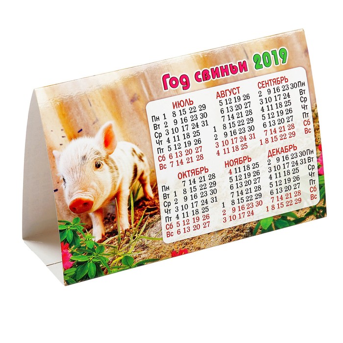 Календарь-домик треугольный "Год Свиньи. Маленький кабанчик, милашка" 2019 год, 18,8х13см