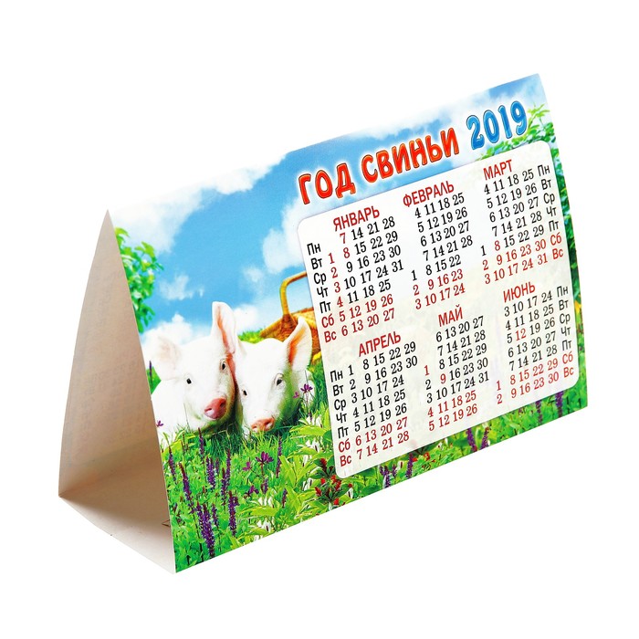 Календарь-домик треугольный "Год Свиньи. Парочка, свинка в ведре" 2019 год, 18,8х13см