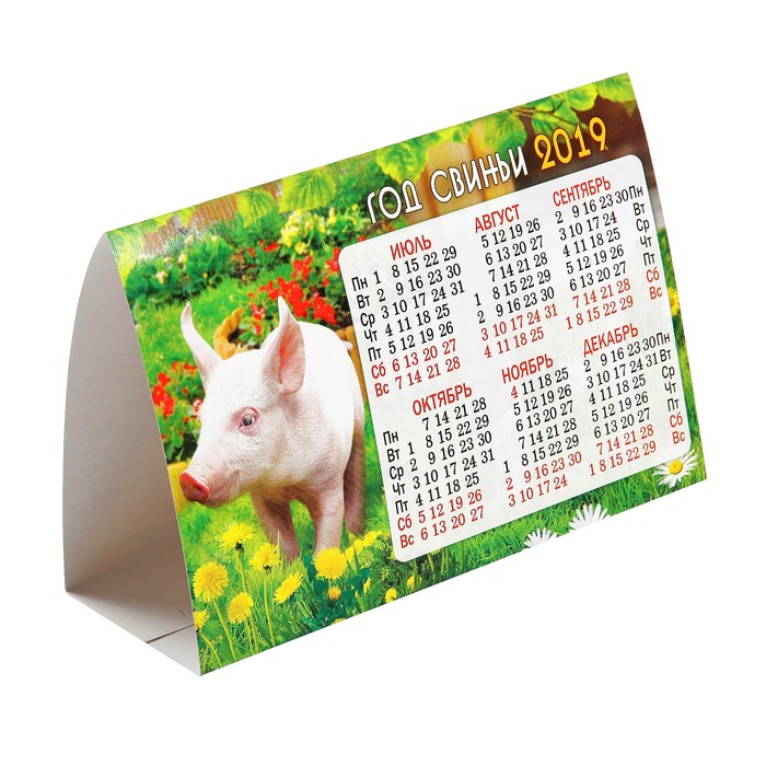 Календарь-домик треугольный "Год Свиньи. Поросенок на травке, в цветах" 2019 год, 18,8х13см 394120
