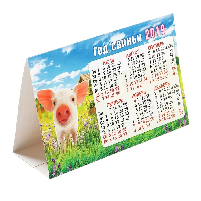Календарь-домик треугольный "Год Свиньи. Свинка на голубом" 2019 год, 18,8х13см