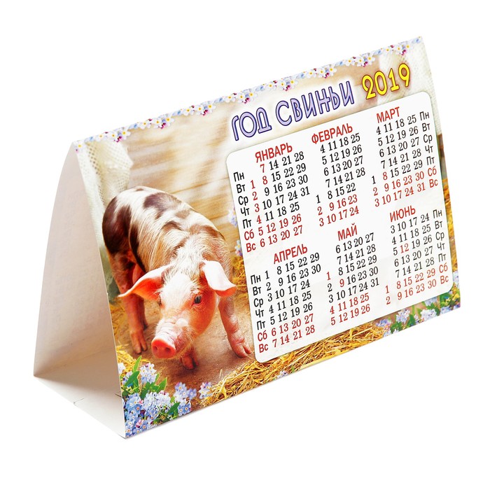 Календарь-домик треугольный "Год Свиньи. Свинка-пятнистая спинка" 2019 год, 18,8х13см