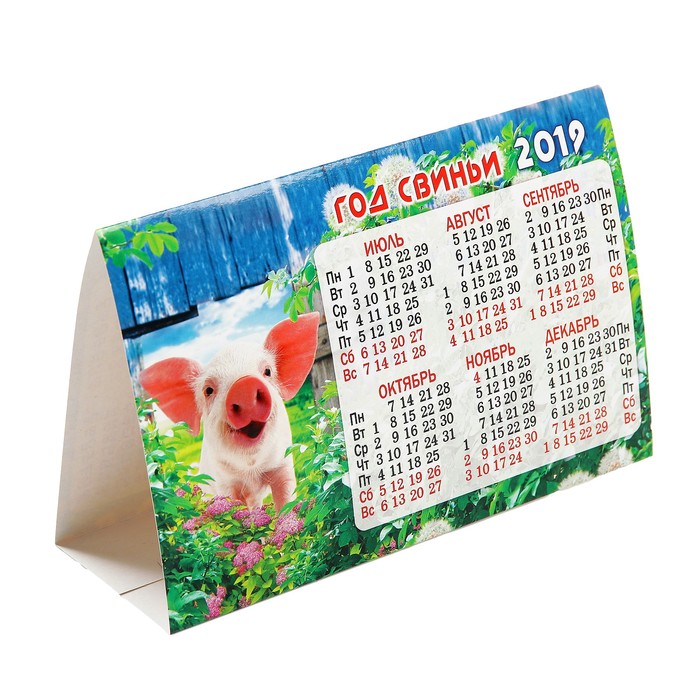Календарь-домик треугольный "Год Свиньи. Свинка в одуванчиках" 2019 год, 18,8х13см