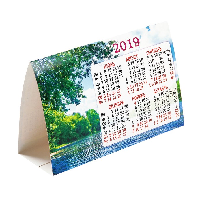 Календарь-домик треугольный "Природа. Полянка у воды, летний полдень" 2019 год, 18,8х13см